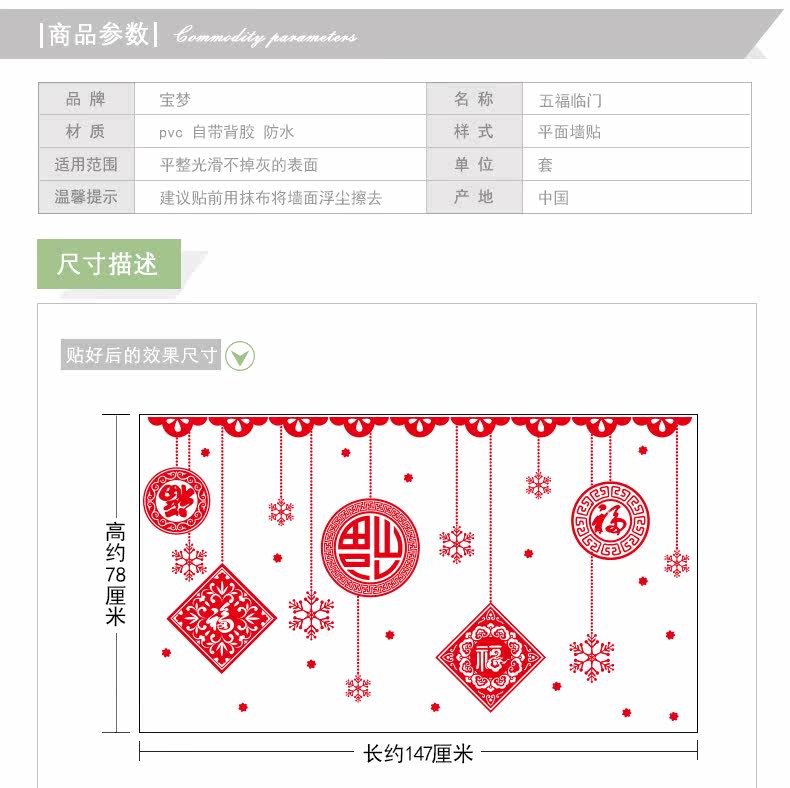 中国风福字墙贴纸春节玻璃橱窗户窗花贴画新年商场布置装饰品挂件
