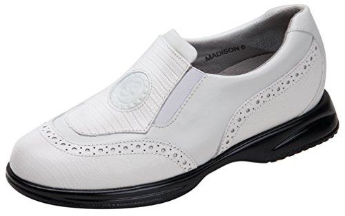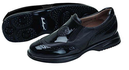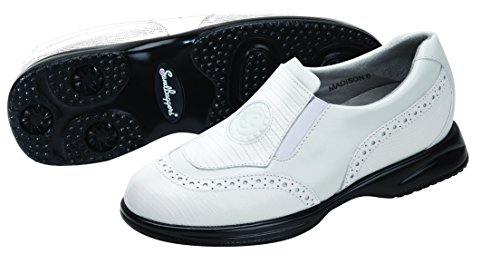 Studio : Sandbaggers Publisher : Sandbaggers Binding : Apparel Product Description Sandbaggers Ladies Madison Golf ShoesComfort, Style Fun For Women Golfers Of All Ages!With help from an orthopedic surgeon, Sandbaggers designed the StepSaver Orthotic for optimum support, stability and reduced fatigue. Slip into a Sandbagger shoe and experience fashion-forward style infused with unmatched course comfort!Sandbaggers Ladies Madison Golf Shoes features: * Leather upper provides durable, comfortable feel * StepSaver Orthotic enhances support and comfort * Moisture-wicking Savoir Suede lining prevents blisters * Soft lining feels great against bare feet * Removable sockliners maintain freshness * Imbedded steel shank provides torsion control * Round Toe Last promotes an easy stride for walkers * Microscopic air pockets in the sole add cushion when you walk * Single-density polyurethane sole is lightweight and flexible * When choosing your size you may want to consider a A1/2 size smaller, as Sandbaggers run generous in length and width 0