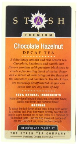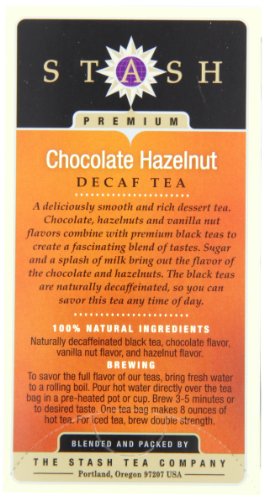Stash Tea Decaf Chocolate Hazelnut Tea, 18 Count Tea Bags in Foil (Pack of 6)