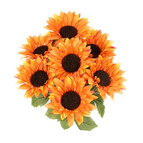 Admired By Nature Stems Atrtificial Blooms Sunflower In Orange for Wedding/Restaurant & Home Office Decoration Arrangement, 2 Piece
