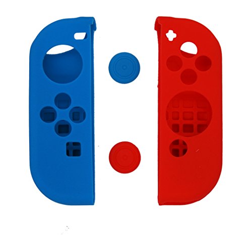 -. Title : Nintendo Switch Joy-Con Gel Guards Cover with Thumb Grips Caps Protective Blue and Red Case Anti-Slip Humanization Design Lightweight Comfort Game Feeling by Mayskey