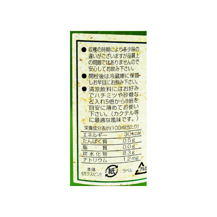 원액1에 대해서5~8배의 수에 묽게해 주문으로 올리고당이나 설탕 벌꿀 등 단맛을 또한 마심 주십시오.또한 조미료로서 레몬 등 대신에 사용해주세요.