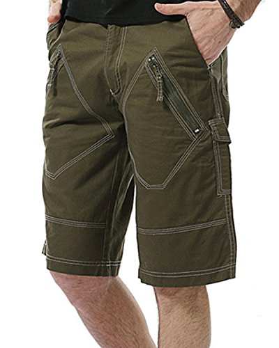 -. Feature : Fabric: Blended, Lightweight, comfortable, and breathable, ideal for summer wear / Occasion: Perfect for everyday wear, outdoor sports wear, or even work attire if shorts are an option, classic and trendy / Style: Washed Cargo short, sits comfortably at waist. Multi-pockets with zipper straps, Zip fly with button closure, Unique diamond leg pocket design / Function: Multi-pockets, including side hand-pockets, plus rear and leg cargo pockets with snaps, stylish and functional, zipper straps, making open and close more conveniently / Attention: Please note that body builds vary by person, therefore, detailed size information should be reviewed below on the product description