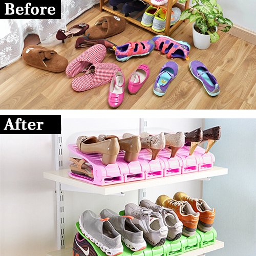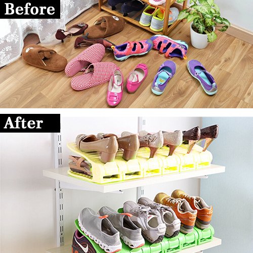 | (LovelyHome)/Shoe Care Cleaning/Shoe Care Kits Sets/DIRECT FROM USA/Adjustable Shoe Slotz Organizer-Shoe Storage Rack Space Saver Rack Holder |