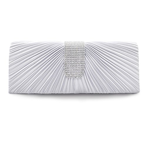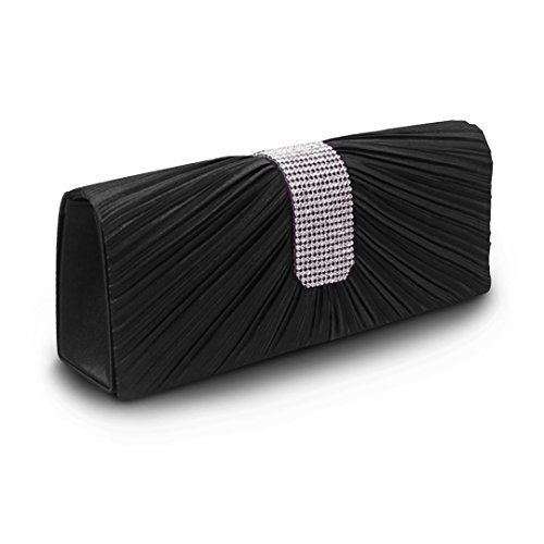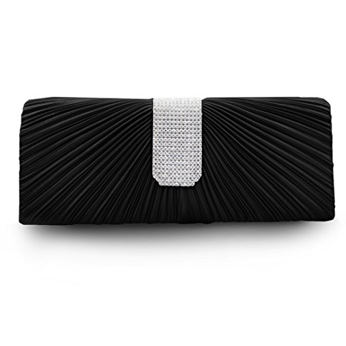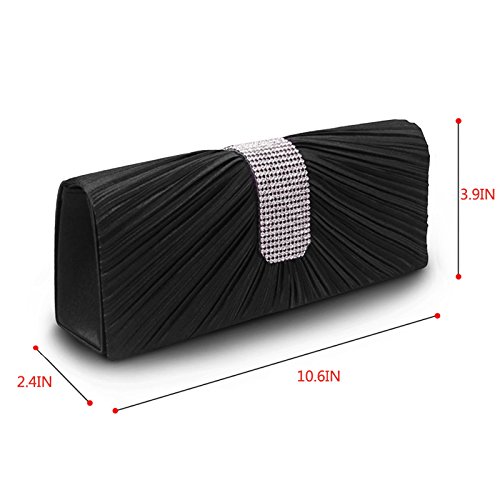AiSi® Women's Pleated Satin Crystal Handle Evening Clutch Bag Prom Bridal Purse(Black)
