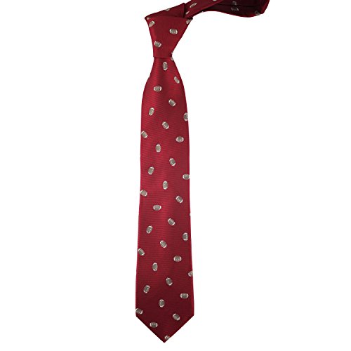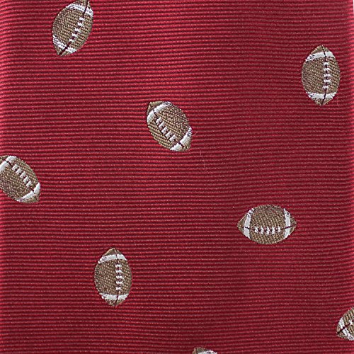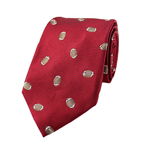 Product Description 100% silk jacquard football necktie, crafted by hand with red ribbed silk fabric background, tonal-brown football motif. Classic and novelty blend goes well with office attire and casual wear. 0