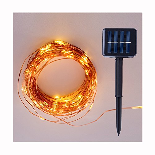 33Feet 100 LEDs Solar Powered String Lights, Super Bright Copper Wire Lights for Indoor/Outdoor Decor, Wedding, Homes, Christmas Party, Warm White