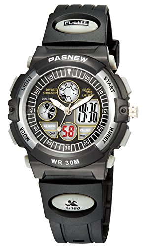 MULTIFUNCTION: 30M waterproof, shock resistant, analog and digital dual dial support two different timezone, alarm clock, timer, week and date display, back lighting, Luminous pointer ,calendar, 12H/24H time function, hourly chime, 1/100 seconds stop watch with split count function.