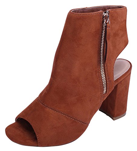 Glaze Women's Peep Toe Open Back Side Zip Chunky Stacked Block Heel Ankle Bootie