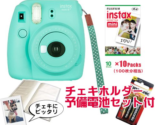 -. Title : FUJIFILM インスタントカメラ チェキ instax mini 8+(プラス) ミント&フイルム100枚&アルバム60枚収納2冊&予備電池セット