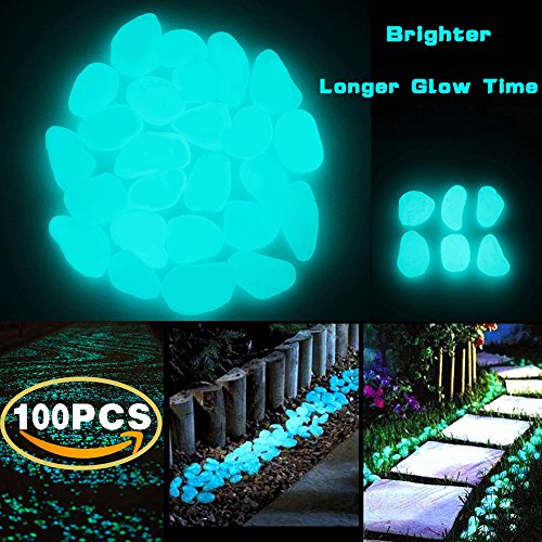 CCOQUS 100 Pcs Brighter Glow in the Dark Garden Pebbles,Decorative Glowing Stones for Walkway Yard ,Fishbowl and Decor