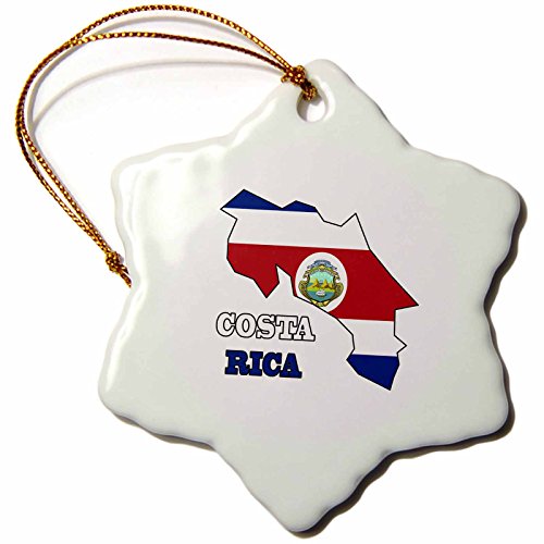 3dRose orn_58774_1 The Flag of Costa Rica in The Outline Map and Words Costa Rica Snowflake Decorative Hanging Ornament, Porcelain, 3-Inch