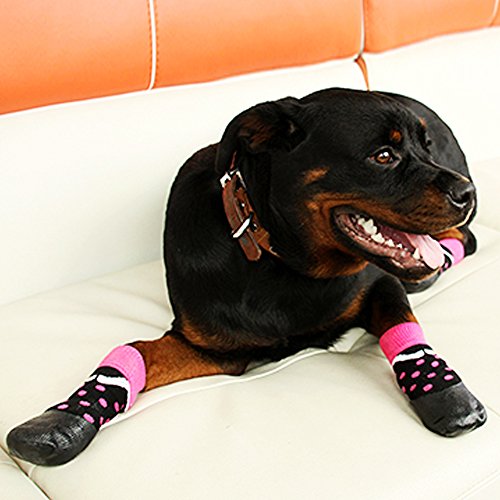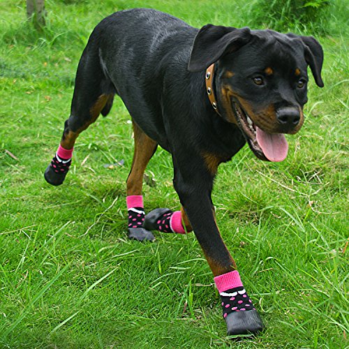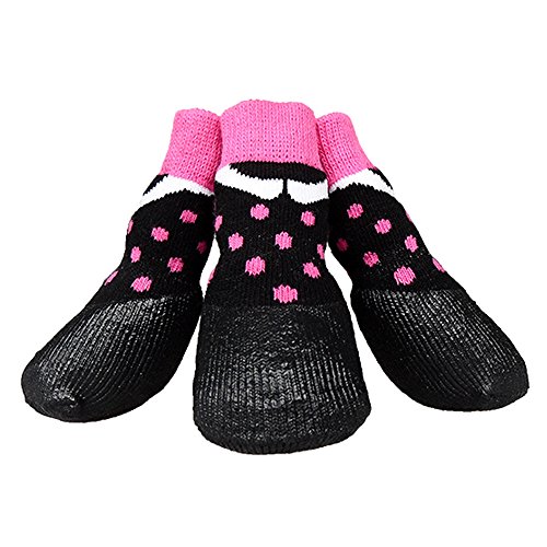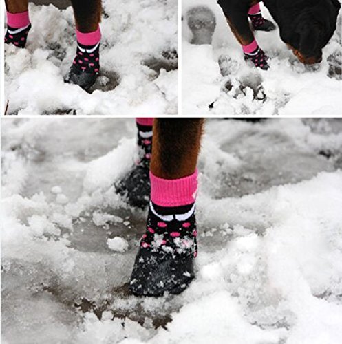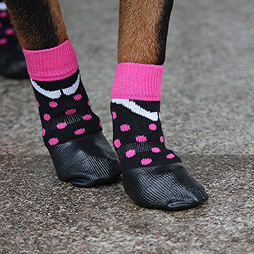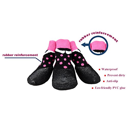abcGoodefg® Pet Dog Puppy Waterproof Nonslip Sports Socks Shoes Boots, Rubber Sole, Comfortable Design (#3, Black+Pink Spot)