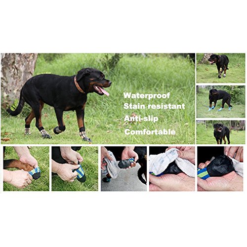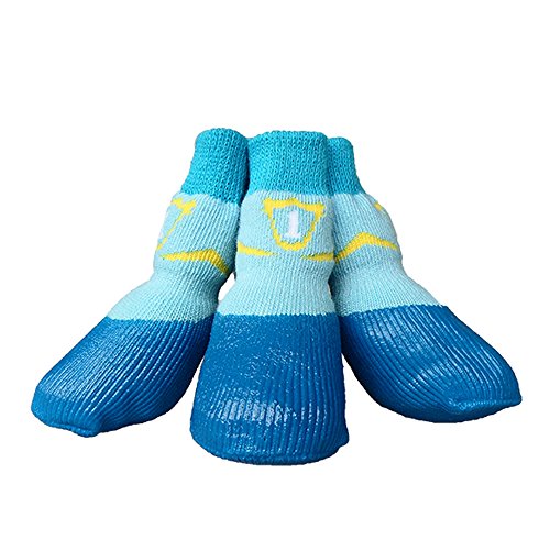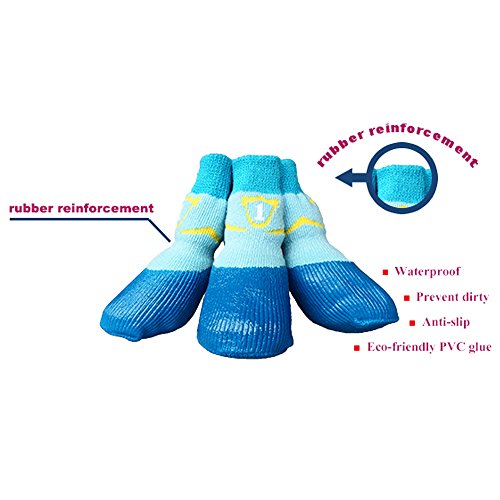 abcGoodefg® Pet Dog Puppy Waterproof Nonslip Sports Socks Shoes Boots, Rubber Sole, Comfortable Design (#4, Blue)