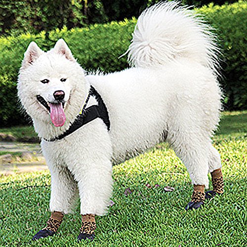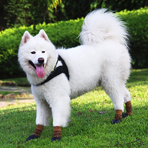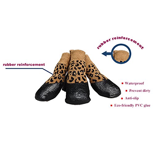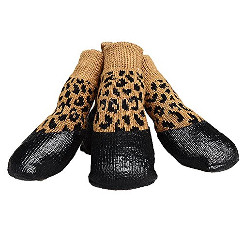 abcGoodefg® Pet Dog Puppy Waterproof Nonslip Sports Socks Shoes Boots, Rubber Sole, Comfortable Design (#4, Leopard)