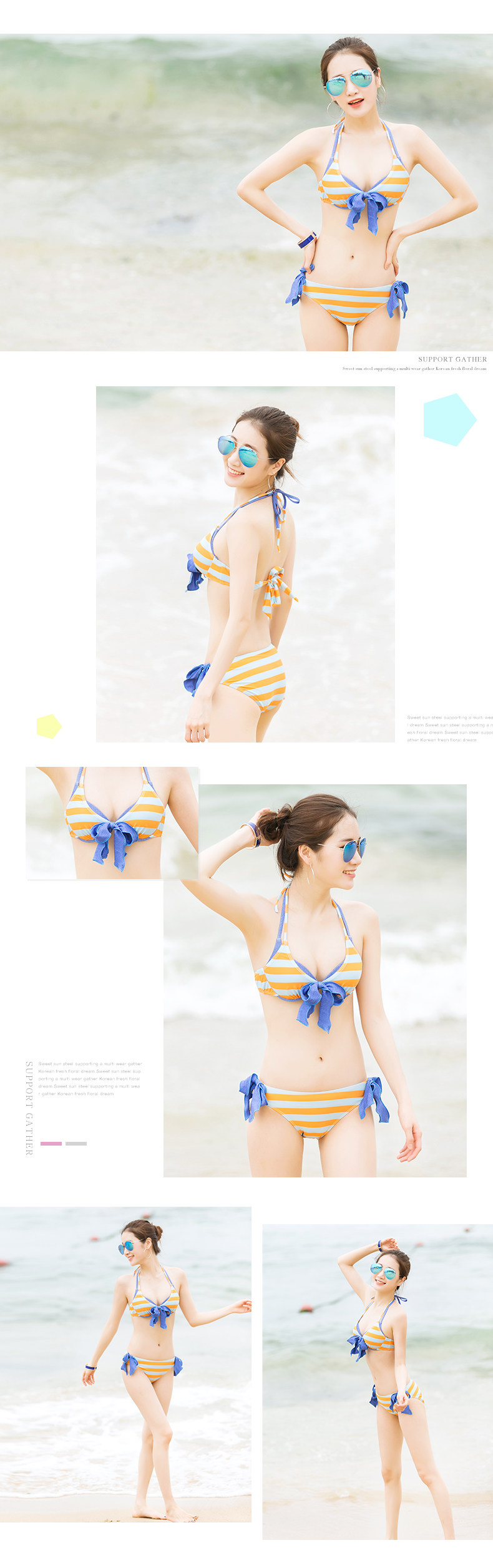 新款泳衣女比基尼三件套平角 钢托聚拢分体运动牛仔裤女泳装