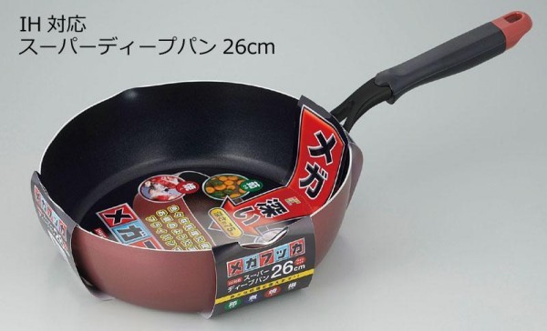 深みがあるのでいろんな料理に使えます。 製造国:中国 素材・材質:本体:アルミニウム合金底面:ステンレス鋼(総板厚2.6mm)内面:ふっ素樹脂加工(マーブル)外面:焼付塗装 仕様:熱源:ガス、IH、ラジエントヒーター、ハロゲンヒーター、シーズヒーター食洗機使用不可容量:3.9L鍋の深さ:78mm ※サプライヤー直送品 ご注文後3~4営業日後の出荷となります【商品名】メガフッカ IH対応スーパーディープパン26cm ワインレッド MR-8148