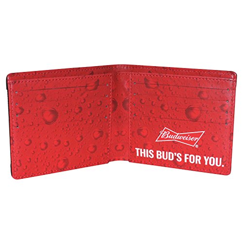 Binding : Apparel Product Description Officially licensed black Budweiser bi-fold wallet. This slim-fold wallet features 8 credit card slots and 2 utility pockets and a currency compartment. Made from polyester with signature Budweiser lining and distressed faux leather trim. 0