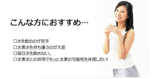 | 水を飲むのが苦手な方でも、サプリメントで水素を摂取していただけます。 |