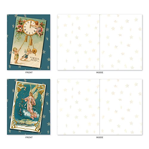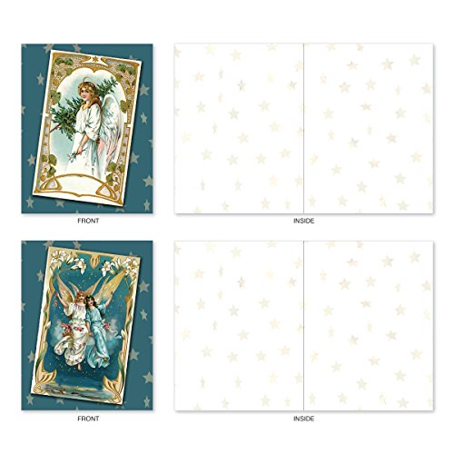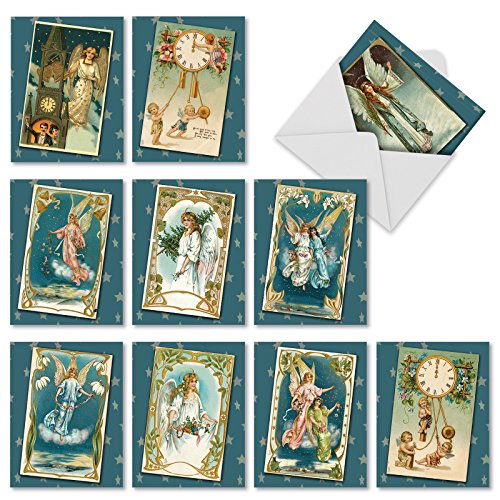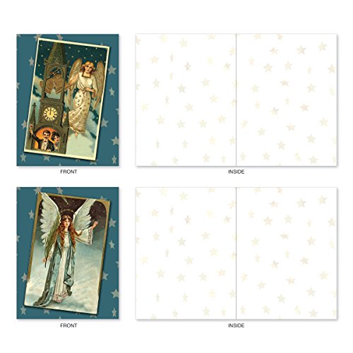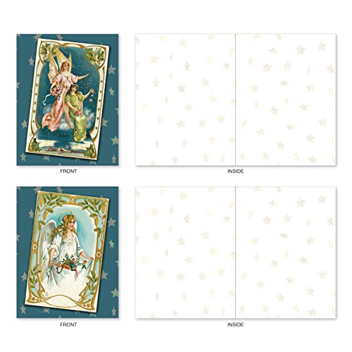 M1756XB Blue Angels: 10 Assorted Blank Christmas Note Cards Feature Antique Holiday Postcards of Heavenly Beings, w/White Envelopes.
