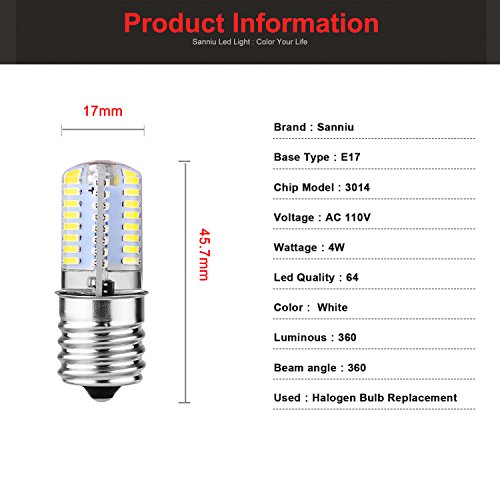 Sanniu E17 LED Bulb Microwave Oven Light Dimmable 4 Watt Daylight White 6000-6500K 64X3014SMD AC110-130V (Pack of 2)