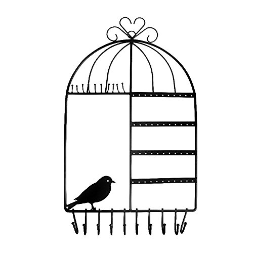 Ushoppingcart Wall Mount Jewelry Organizer Hanging Earring Holder Necklace Jewellry Display Stand Rack (birdcage pattern: black)