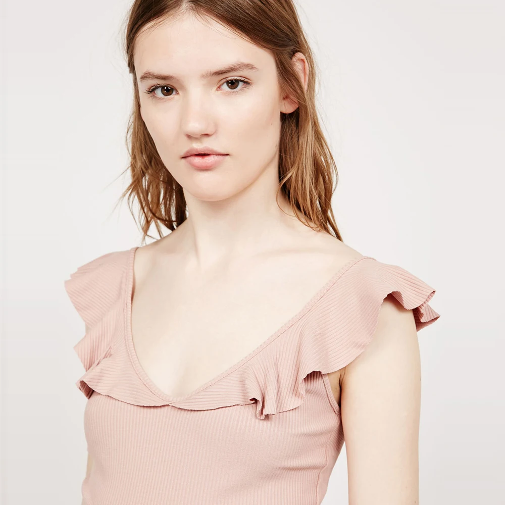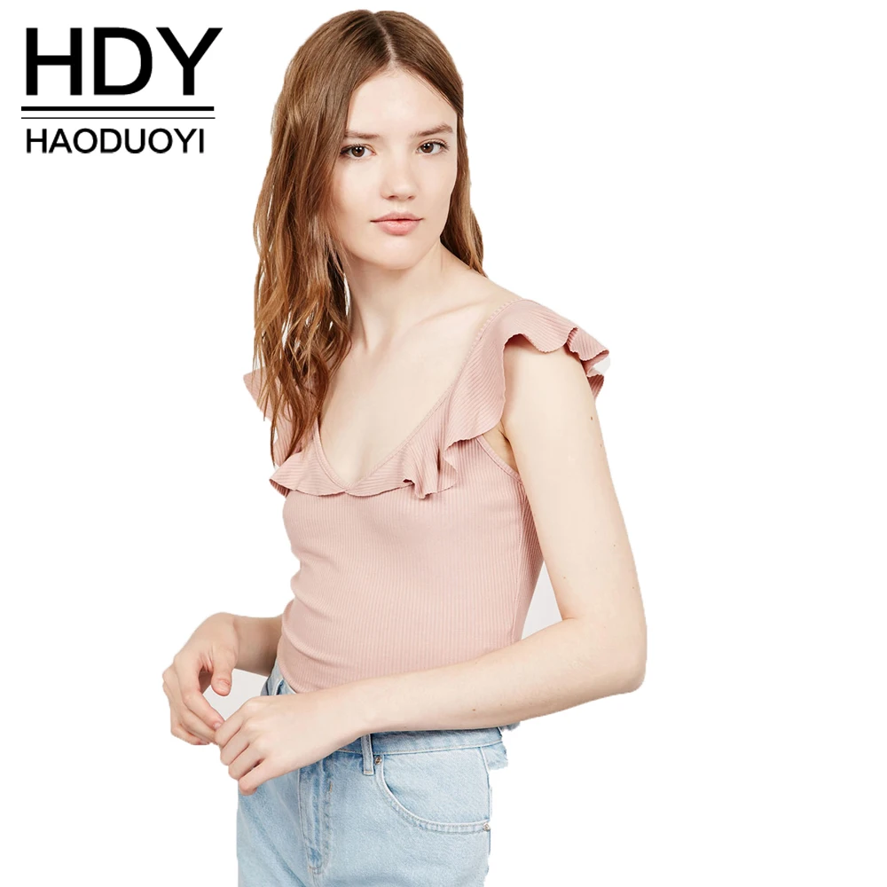 HDY Haoduoyi New Fashion Women Tops Solid Pink Sexy V Neck Sleeveless Vest Elegant Ruffles Streetwear Basic Casual Vest | |||||||||||||||||||||||||||||||||||||||