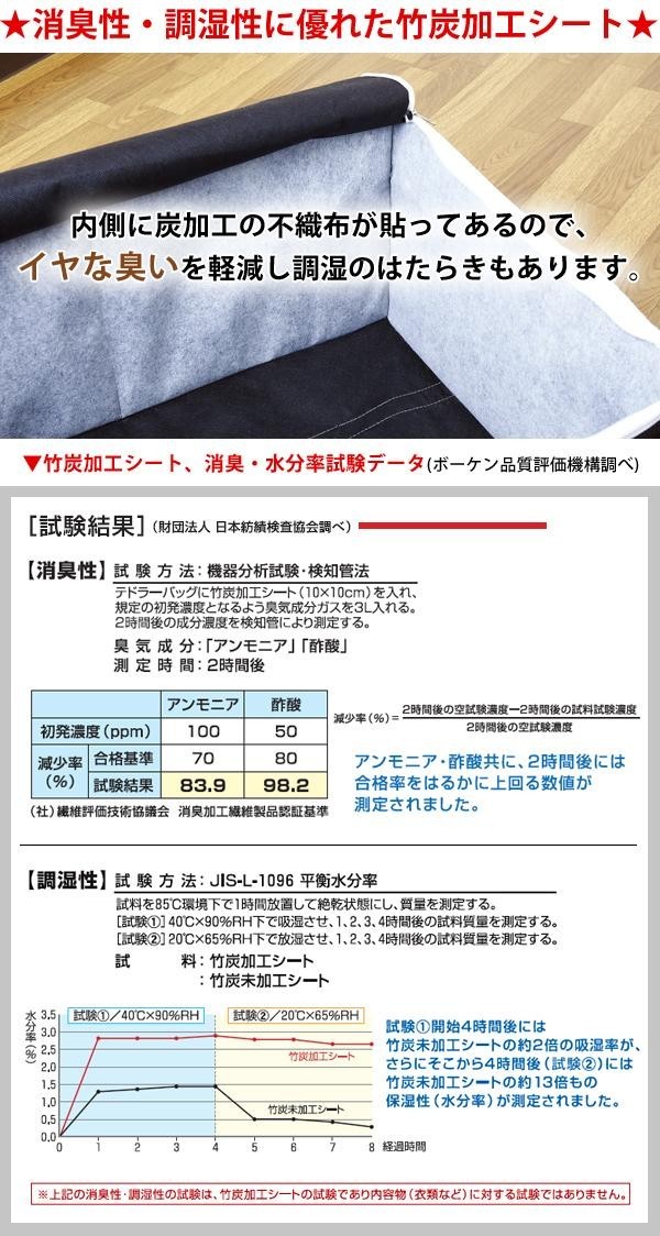 ●竹炭加工シート、消臭・水分率試験データ有り(ボーケン品質評価機構調べ)