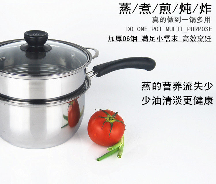 Packaging volume: 30 * 30 * 15 Brand: South Hui Model: 3353 Color Category: small steamer 20cm double handle single handle small steamer 20cm double handle pot 20cm (no steam grid) double handle pot 22cm (no steam grid) Single Handle milk pot 18cm (no steam grid) single handle milk pan 20cm (no steam grid) material: 400 series stainless steel pot, type: single base diameter: 20cm Origin: Chinese mainland depth: 10cm