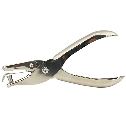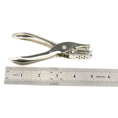 -. Feature : Metal, handheld single hole punch / Punch Size : 13 x 5.8 x 1.6cm/ 5.1" x 2.3" x 0.6"(L*W*T) / punches 6mm hole / Package : 1 x Single Hole Punch / Fit for stamp, ID card or craft paper work drilling hole use.