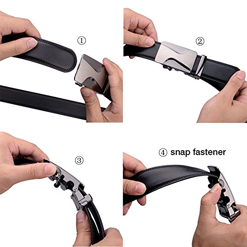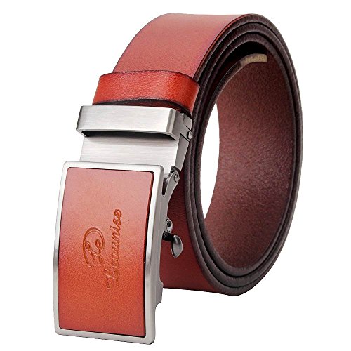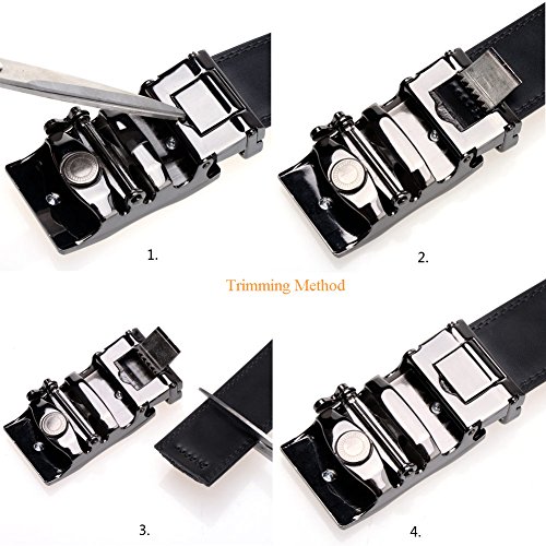 -. Feature : First-layer cowhide leather, soft belt strap. / Sliding ratchet belt for men. / 1 3/8 '' inch (35mm) wide strap. / Belt size (full-length of belt strap) we send is 48" (120cm), if we don't receive your size message. If you need a size bigger than 48 inch (120cm), please choose packages shipped from HongKong and leave us a message. Fulfillment By Amazon doesn't offer the chance to choose sizes. / With the help of a pair of scissors, you can easily adjust belt length to fit your size according to our trimming picture. So if your belt is too big, please trim it.