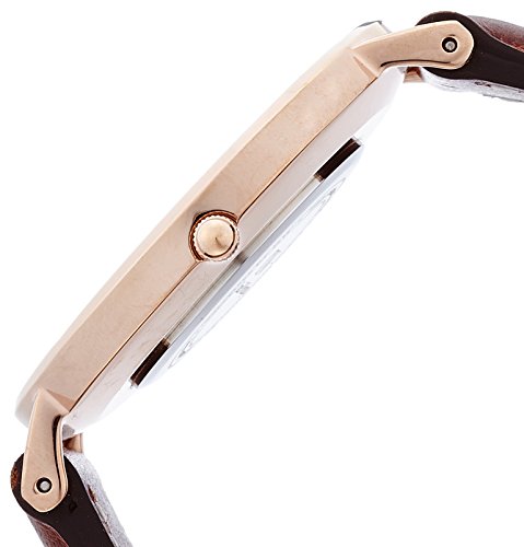 This classic Daniel Wellington St. Andrews 0507DW analog quartz watch features an egg shell white dial with a rose gold case and brown leather band.