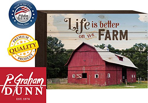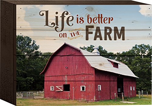 Life is Better on the Farm Red Barn 6 x 8 Wood Block-Style Wall Art Sign Plaque