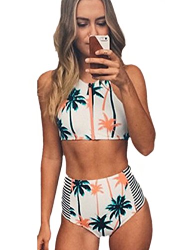 -. Title : Blooming Jelly Women's Coconut Tree P.R.Int High Waist Bikini Set Bathing Suit