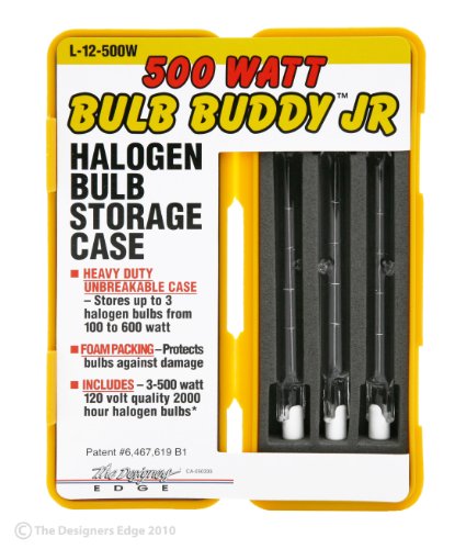 Studio : Coleman Cable Publisher : Coleman Cable Binding : Tools Home Improvement Product Description Designers Edge L12500W Work Light Replacement 4 5/8-inch T-3 Halogen Bulbs with Hard Case, 3-Pack, Clear, 500-Watt. Complete with bulb buddy case and (3) 500-watt halogen replacement bulbs. Works perfectly for work sites and garages, featuring extra filament support. Heavy duty unbreakable plastic case protects your bulb from damage. Foam inserts in the case protect each bulb individually and reduces movement of lamps during transport. Bulbs are meant to specifically replace size 4 5/8-inch t-3 halogen lights. Rated at approximately 1,500 hours for a long life. To help ensure bulbs achieve their maximum life, install replacement lamps with clean gloves to prevent oils from contacting surface of bulb. Patented / trademarked: us d 646,7619 b1. TOLL FREE HOTLINE, 1-800-561-4321. If you have immediate questions about application, installation, troubleshooting, or a damaged component, please call CCI Consumer product hotline at 1-800-561-4321 or email questions to: CCI.ConsumerSupport@southwire.com. The Designers Edge (R) brand is a registered trademark of Coleman Cable Inc. 0