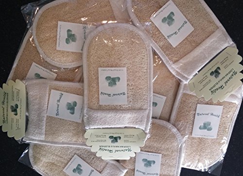 Measuring 15cm x 24 cm / 5.5" x 9.5". Made from Natural materials, loofah and cotton