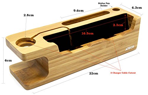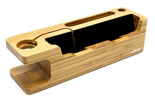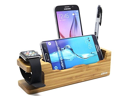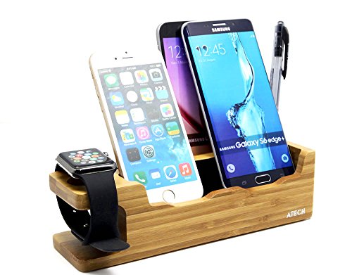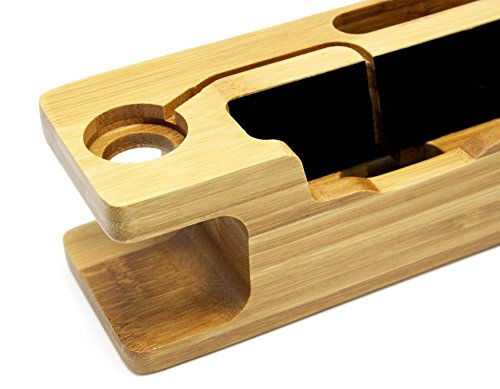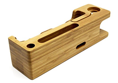 Bamboo Charging Station, Apple Watch Stand Smartphone Holder & Apple Pencil Holder, Desktop Docking Charger Station, Multi-Device Organizer for Apple iWatch iPhone 7 4.7", 7 5.5" Plus Samsung