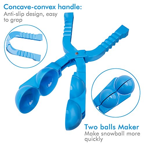 Outstanding Features of Panada Snowball Maker -Make two ball in a second-TWO-BALL snow ball maker, make snow balls quickly and easiliy, to be winner in a snow fight! -Heavy duty plastic made, perfect for outdoor use. Support heavy weight snow balls, suitable for kids play. -Ergonomic handle, comfortable to use. The size of snowball maker is designed for kids that about 4 years old or more. The handle has proper length and have carve that have good anti-slip effect.