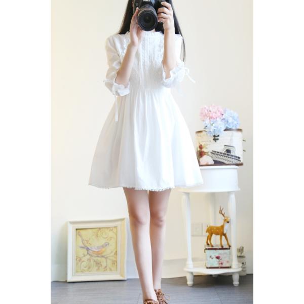 フリルレースコットンワンピース レディース チュニック ガーリー ミニ シンプル 七分袖 2017 新作 ファッションレースとフリルでとことんガーリーに可愛く&上品な印象に*プチハイネックでトレンド感もあり、フレアシルエットで脚長効果抜群!アクセサリーやバッグなどカラー小物で自分らしく着こなせます◎【カラー】ホワイト【素材】綿【サイズ】[S]着丈77/胸囲84/ウエスト74/肩幅34/袖丈43(cm)[M]着丈78/胸囲88/ウエスト78/肩幅35/袖丈43(cm)[L]着丈79/胸囲92/ウエスト82/肩幅36/袖丈44(cm)※製品により多少の誤差が生じる場合がございます。【ご使用上の注意】着用に問題のない製法のほつれ、商品の性格上、開封された商品・一度でも着用されました商品の返品・交換は一切お受け致しません。イメージと違う、サイズが合わない等の理由での返品は一切受け付けておりません。購入後のサイズ交換は対応しておりません。生産終了後すぐ発送しているため匂いがある場合がございます。ご了承ください。【生産国】made in china※商品はご注文を頂いてから2週間前後の到着となります。
