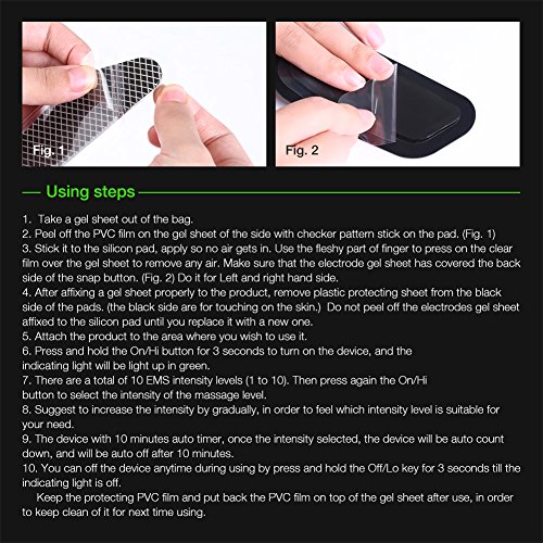 Es ist wiederverwendbar. EMS-Muskeltrainer inklusive 2 x Elektroden-gel, Bedienungsanleitung und CR2032 Batterien fur Muskelstimulation