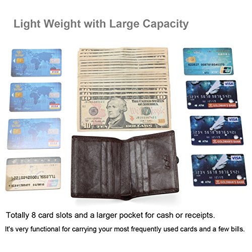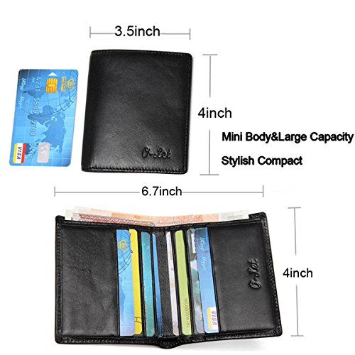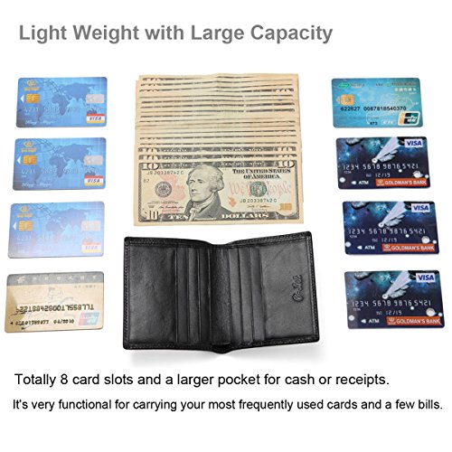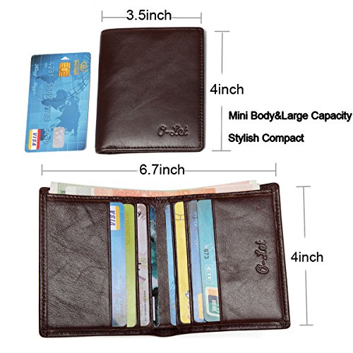 -. Feature : [ELASTIC MATERIAL]O-LET wallet use elastic material that even being folded or put in pocket, the wallet will quickly recover to original status without fold mark. / [GENUINE LEATHER] Our RFID wallet for men made of high quality cowhide genuine leather that possesses unparalleled luxury quality visually, durability and has the most comfortable feel. / [MINI BODY&BIG CAPACITY]Sizing 4.1 x 3.5 x 0.6 inches, lightweight with huge storage capacity, totally 8 card slots and a larger pocket for cash or receipts. It's very functional for carrying your most frequently used cards and a few bills. / [STYLISH COMPACT]The design of the wallet was created specifically with minimalist aesthetic to reduce pocket bulk and easy carry card holder, comfortably fitting in most pockets of suits, pants, shorts and you can hardly feel its existence. / [RFID BLOCKING TECHNOLOGY]The wallet for men adopts rfid blocking material to ensure that all the credit&debit cards, driver license, ID card and passport placed within will be well protected. But the signal of some ID badge, access cards and hotel room cards which operates in 125 KHz, cannot be blocked by RFID wallet.