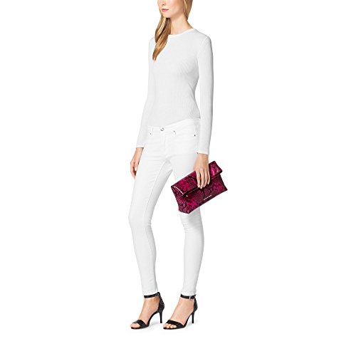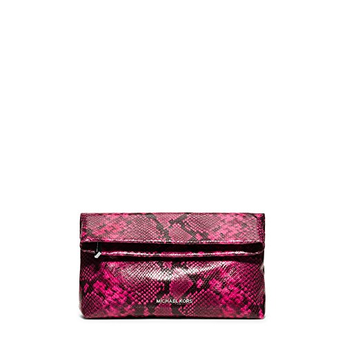 Infuse exotic appeal into your closet with this fashion-forward clutch. Designed from glossy python-embossed leather, this accessory folds over into a compact silhouette that can be tucked under your arm for effortless ease. Pair it with your favorite LBD and ankle-wrap heels for a luxe pop of color.Feature