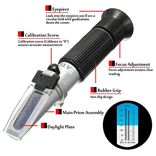 Beer Wort Refractometer,V-Resourcing Brix/Specific Gravity Refractometer for Beer Brewing, Dual Scale( Brix 0-32%, SG Wort 1.000-1.130)