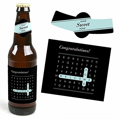 Home Sweet Home - 6 Beer Bottle Labels Housewarming Gift with 1 Beer Carrier