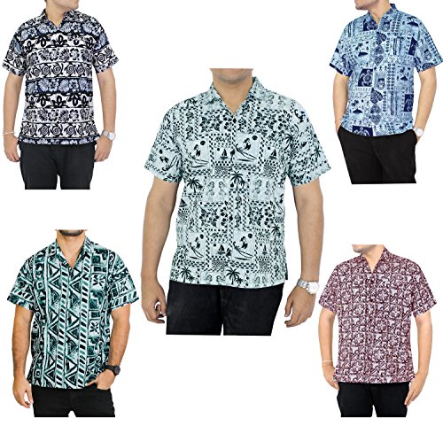 -. Title : La Leela Men's Aloha Hawaiian Shirt Short Sleeve Button Down Casual Beach Party Blue