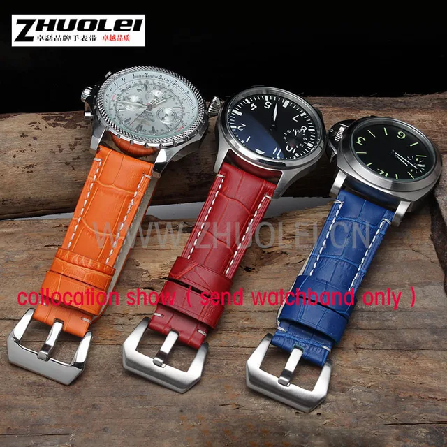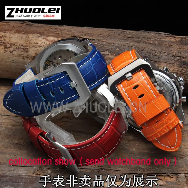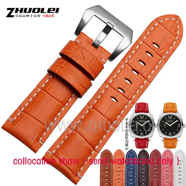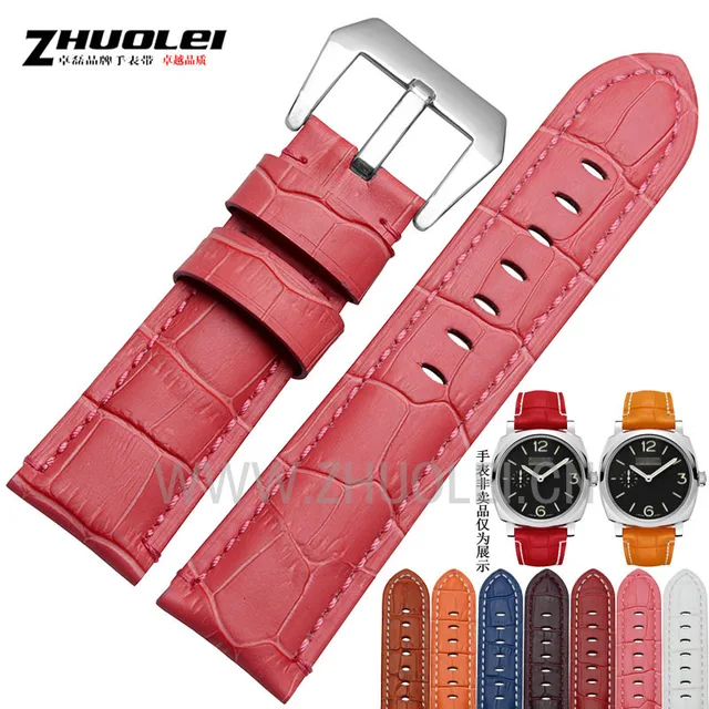 | [해외] 정품 가죽 팔찌 시계 스트랩 24 미리메터 손목 PAM 손목 밴드 여러 가지 빛깔의 핑크 블루 레드 브라운 시계 액세서리 |