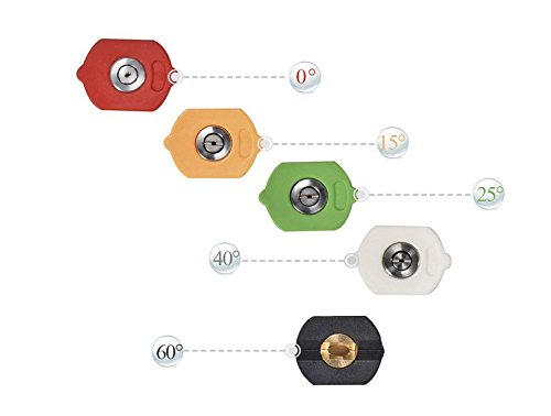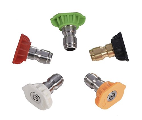 -. Brand : FORSUN -. EAN : 8998294562644 -. Feature : Different spray angle allows you to clean hard-to-reach areas quickly and easily / 5 Pack: 65 Degrees Brass soap nozzle, 0 Degrees Red Stainless Steel Nozzle Tip,15 Degrees Yellow Stainless Steel Nozzle Tip, 25 Degrees Green Stainless Steel Nozzle Tip, 40 Degrees White Stainless Steel Nozzle Tip / Don't use a ladder to clean or spray water for tree with these spray nozzles / Designed for high pressure washing up to 4000 PSI; ADL nozzle cover / More Application: Can be attached to a Quick-Connect Wand for swifter application and more -. Label : FORSUN -. Manufacturer : FORSUN -. MPN : FORSUN-000336 -. PartNumber : FORSUN-000336 -. ProductGroup : Lawn & Patio -. ProductTypeName : OUTDOOR_LIVING -. Publisher : FORSUN -. Studio : FORSUN -. Title : Pressure Washer Spray Nozzle Tips - 1/4 Quick Connection Design 2.5 GPM (5 Pack)