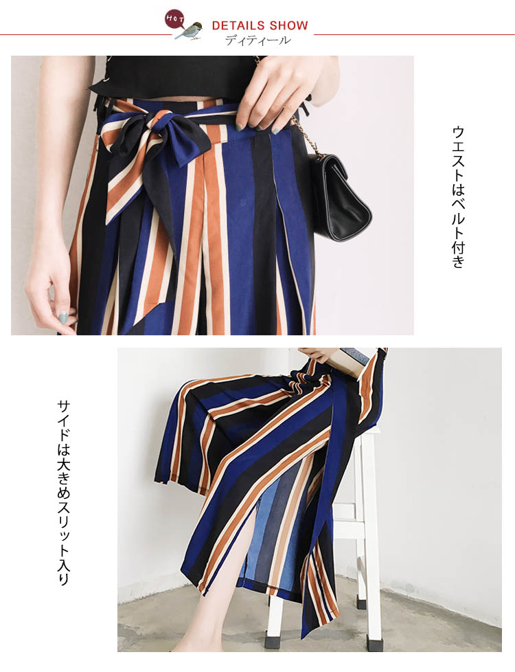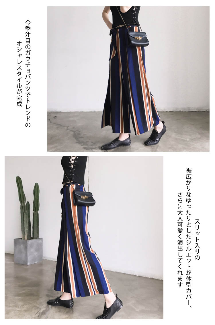 | 今季注目のガウチョパンツでトレンドのオシャレスタイルが完成スリット入りの裾広がりなゆったりとしたシルエットが体型カバー、さらに大人可愛く演出してくれますさらりとした着心地でこれからのシーズンに大活躍しそう | |