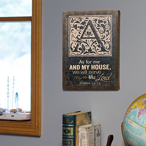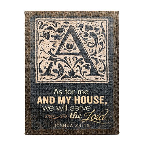 Scrolling As For Me and My House 16 x 12 Burlap Wrapped Solid Wood Wall Art Sign