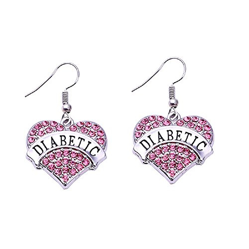 (Mammoth Sales)/Health Care/Diabetes Care/DIRECT FROM USA/Diabetes Diabetic Type 1 2 Rhinestone Heart Earrings Medical Alert - Various Colors (Pink)